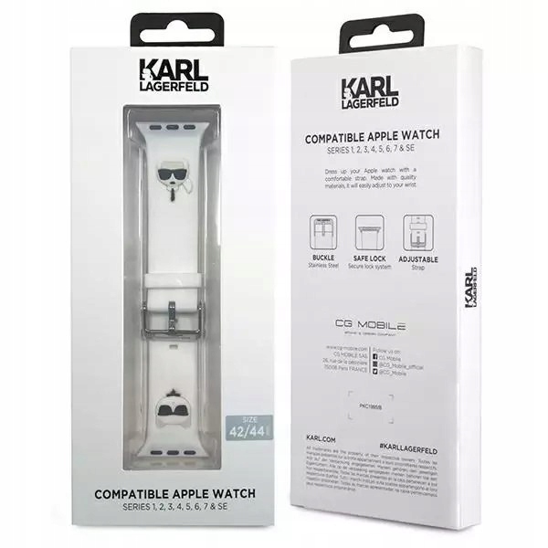 Pasek do smartwatcha Karl Lagerfeld KLAWLSLCKW do Apple Watch 42/44/45mm biały/white strap Silicone Karl & Choupette Heads Karl Lagerfeld