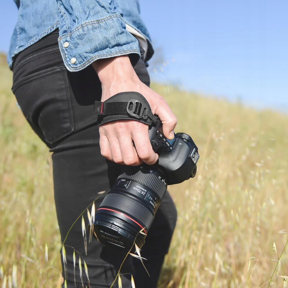 Jeśli chcesz użyć aparatu wystarczy, że włożysz rękę i dociągniesz pasek. W kilka sekund masz w ręku pewnie trzymający się aparat.