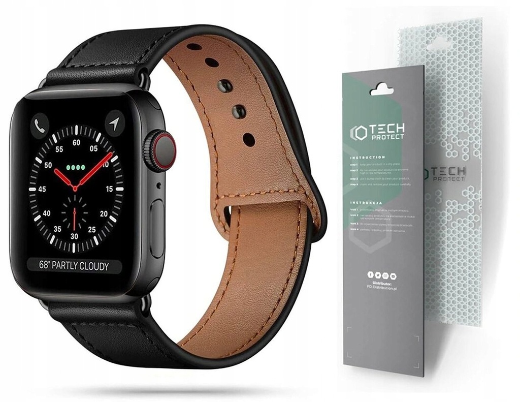 CECHY PRODUKTU TECH-PROTECT LEATHERFIT APPLE WATCH 4 / 5 / 6 / 7 / SE (42 / 44 / 45 MM) BLACK