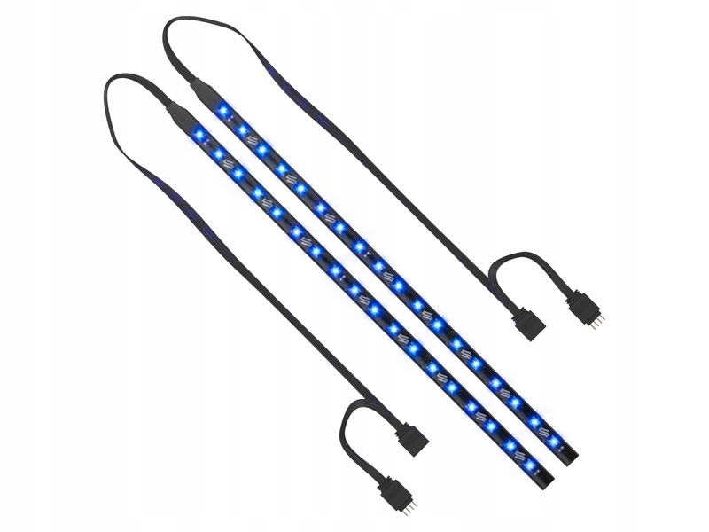 Informacje dodatkowe: - Ilość pasków LED [szt]:2 - 18 diod w każdym pasku z możliwością dobrania koloru świecenia. - Długie na 65 cm przewody sygnałowe z rozdzielaczem na końcu. - Kompatybilność z 4-pinowymi systemami RGB (12V). - Możliwość synchronizacji z innymi urządzeniami RGB, np. wentylatory R i systemy chłodzenia procesorów SilentiumPC z podświetleniem RGB. - Wygodne mocowanie na taśmę klejącą.