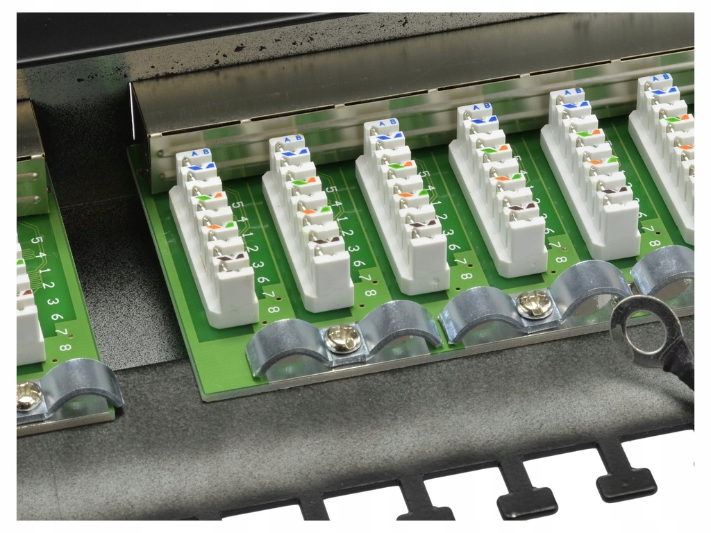 Patch panele służą do zakończenia kabli skrętkowych prowadzonych w okablowaniu poziomym i pionowym oraz stanowią punkt podłączenia sprzętu aktywnego pracującego w sieci. Elementy charakteryzują się wysoką jakością parametrów transmisyjnych i mechanicznych.