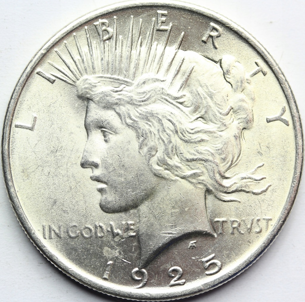 NA AUKCJI WYSTAWIANA JEST PRZEPIĘKNA ORYGINALNA SREBRNA MONETA - PEACE DOLLAR - USA USA 1925 - LIBERTY HAED / EAGLE - SREBRO - SUPER STAN POLECAM - RARYTAS - NA INNYCH AUKCJACH WYSTAWIAM MONETY Z TEJ SERII - ZAPRASZAM DO OGLĄDANIA - 7/14/07/25