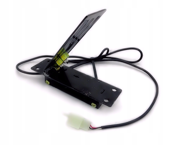 Podstawowy pedał z potencjometrem magnetycznym do kontroli obrotów/prędkości silników elektrycznych (szczotkowych i bezszczotkowych) w maszynach i pojazdach elektrycznych. Pedał podłączany do kontrolera/sterownika silnika elektrycznego na 3 piny, kompatybilny z większością sterowników/kontrolerów dostępnych na rynku. Na zlecenie pedał może być przerobiony jako pedał hamulcowy na linkę.