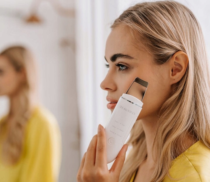 ⭐Urządzenie wykorzystuje ultradźwięki do przeprowadzenia peelingu kawitacyjnego. Te wysokie częstotliwości dźwiękowe są w stanie delikatnie złuszczyć martwy naskórek, usuwając go skutecznie i bezboleśnie.