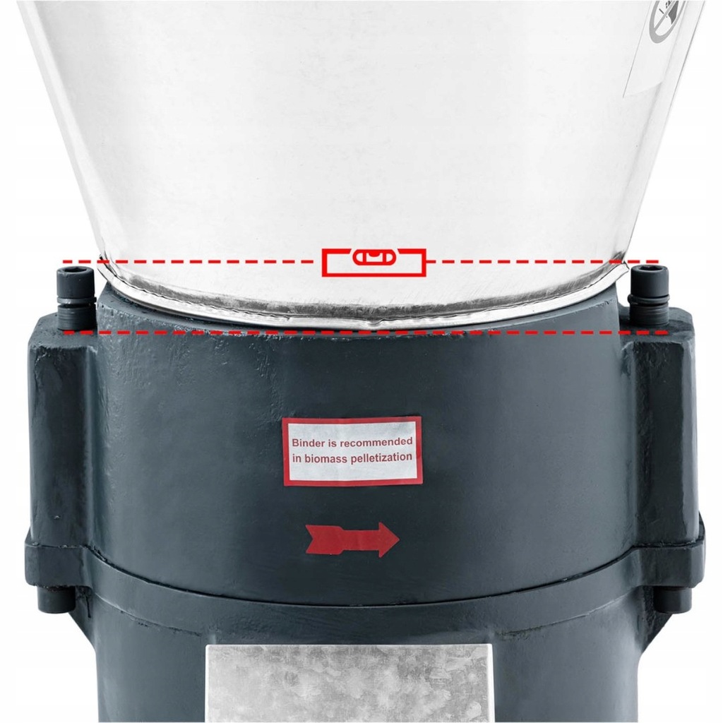 Peleciarka firmy Wiesenfield przeznaczona jest do produkcji pelletu do karmienia zwierząt, nawożenia oraz ogrzewania. Wydajność przy produkcji paszy wynosi do 400 kg/h w przypadku przetwarzania zrębków drzewnych - do 200kg/h. Urządzenie pozwala na samodzielne komponowanie pokarmów dla zwierząt i dozowanie odpowiednich witamin i minerałów do pałeczek nawozowych lub granulek paszowych produkowanych z kukurydzy, owsa czy siana. Dzięki przetwarzaniu zrębek drzewnych w trociny można uzyskać przyjazny dla środowiska pellet. Peleciarkę należy podgrzać do temperatury od 60 do 80°C za pomocą próżniowej obróbki cieplnej. Dzięki temu powierzchnie nie będą ulegać uszkodzeniu i deformacji podczas ogrzewania. Masa wytłaczana jest dzięki zastosowaniu masywnego walca, który przepycha zawartość przez matrycę o średnicy 230 mm. Rezultatem jest pellet o średnicy 6 mm. Rynna wyrzutowa ułatwia bezpośrednie napełnianie worków. Szafa sterownicza w urządzeniu jest przejrzysta i intuicyjna. Pelleciarka posiada wyłącznik awaryjny gwarantujący bezpieczeństwo podczas użytkowania. Urządzenie zasilane jest 3-fazowym prądem400 V, dostarczane jest bez wtyczki przyłączeniowej. Mobilność urządzenia zapewniają solidne koła. UWAGA!!! Przy zakupie pelleciarki należy zamówić również spoiwo do pelletu (nr 10530000). Wbudowane matryce i rolki mogą być używane do 300 godzin. Po upływie zalecanego czasu pracy części należy niezwłocznie je wymienić.