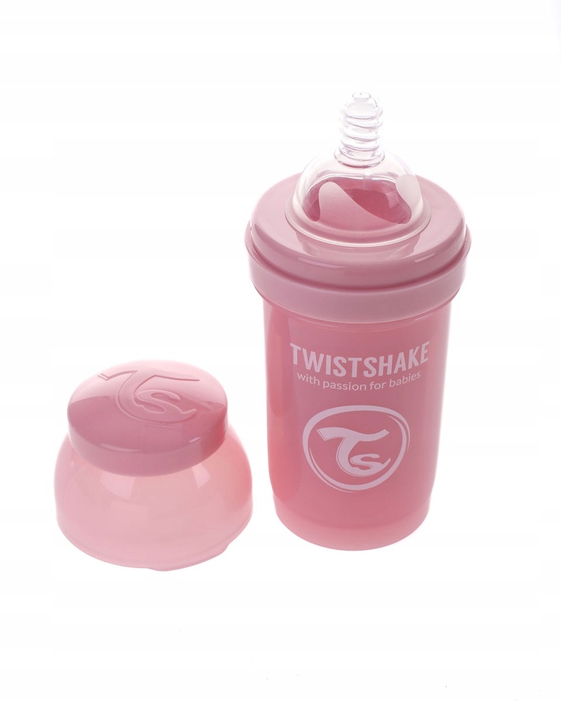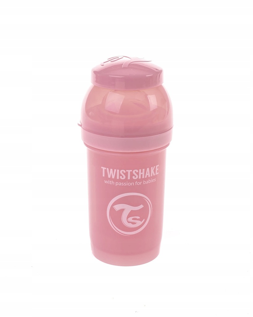 Butelka antykolkowa szwedzkiej firmy Twistshake, w kolorze różowym o pojemności 180 ml.