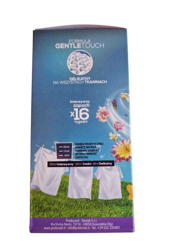 Perfumy PROFUMEL PEONY do prania o przyjemnym trwałym zapachu. W odróżnieniu od ulotnego zapachu płynów zmiękczających Perfumel utrzymuje się na ubraniach nawet przez 16 tygodni.