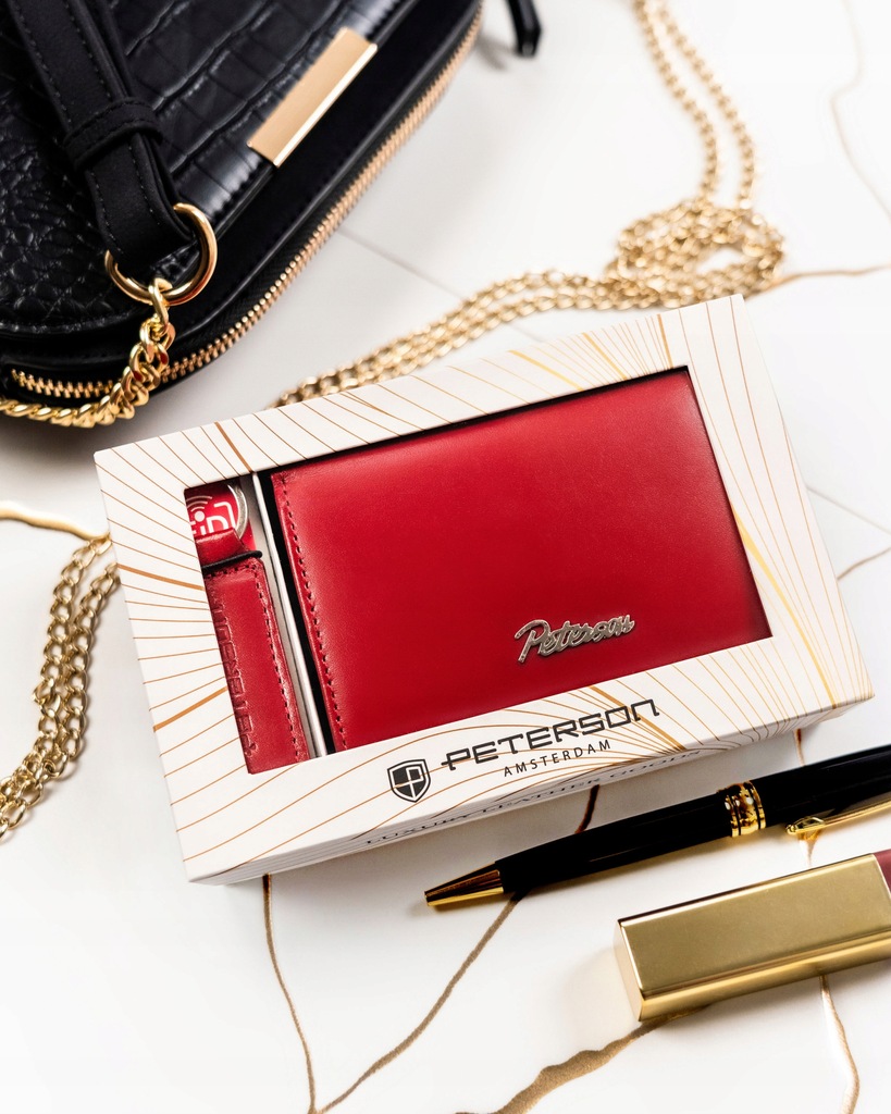 Zestaw prezentowy: pojemny portfel damski i brelok ze skóry naturalnej — Peterson