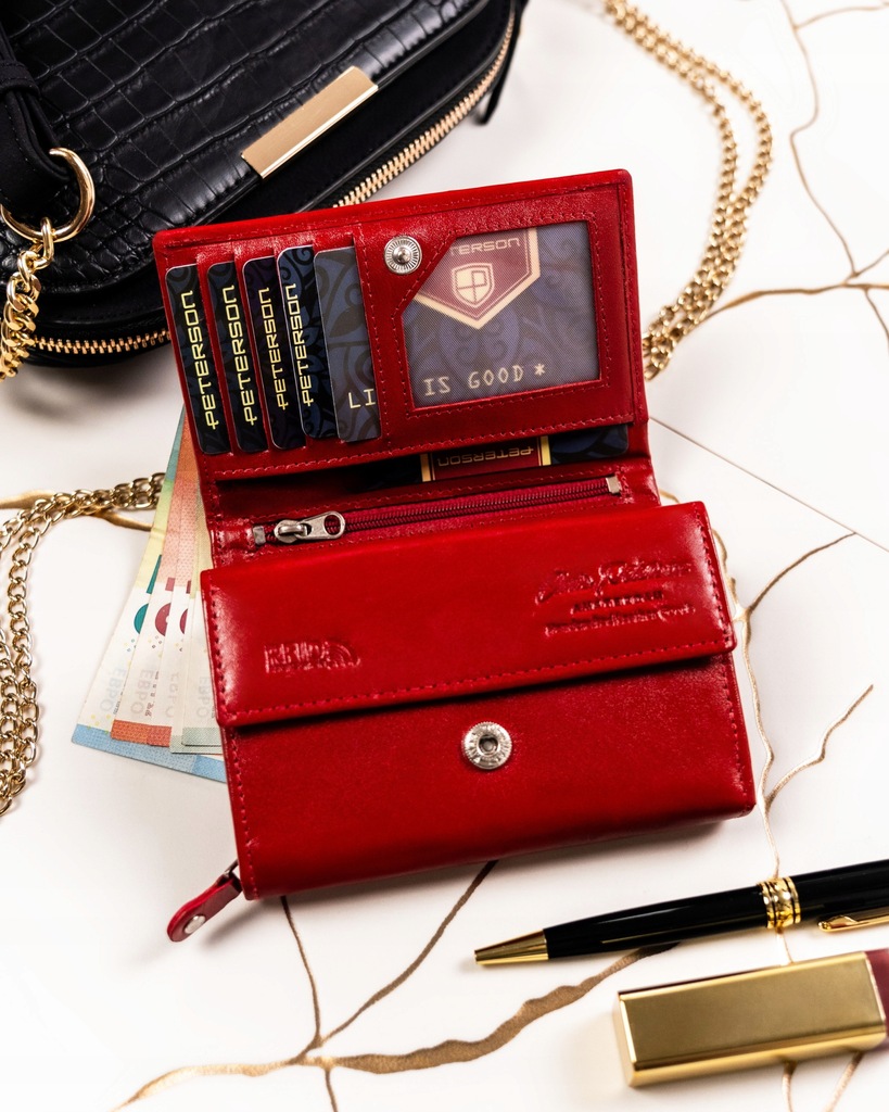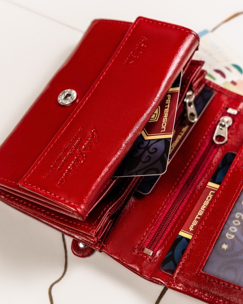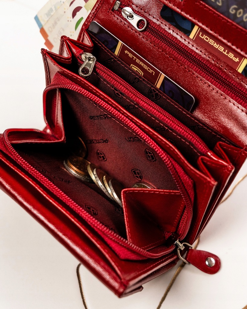 - Z rozbudowanym wnętrzem | Portfel posiada dużo praktycznych przegródek i kieszonek, dzięki czemu pomieści wszystkie karty i dokumenty;