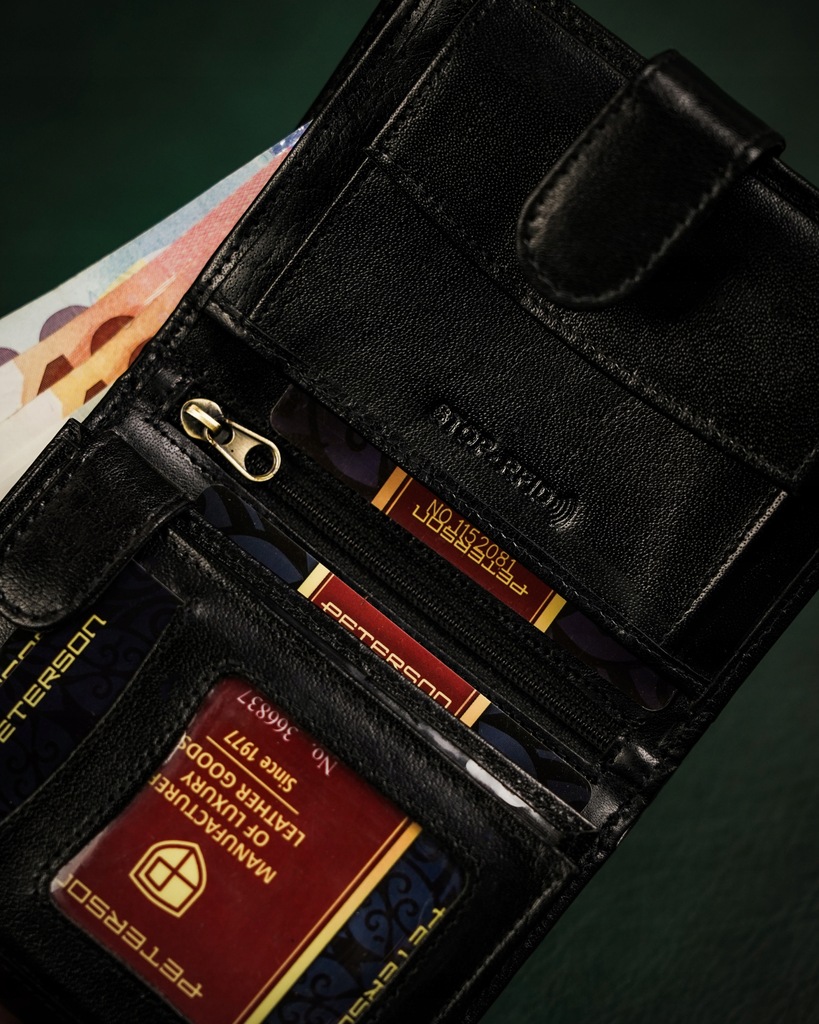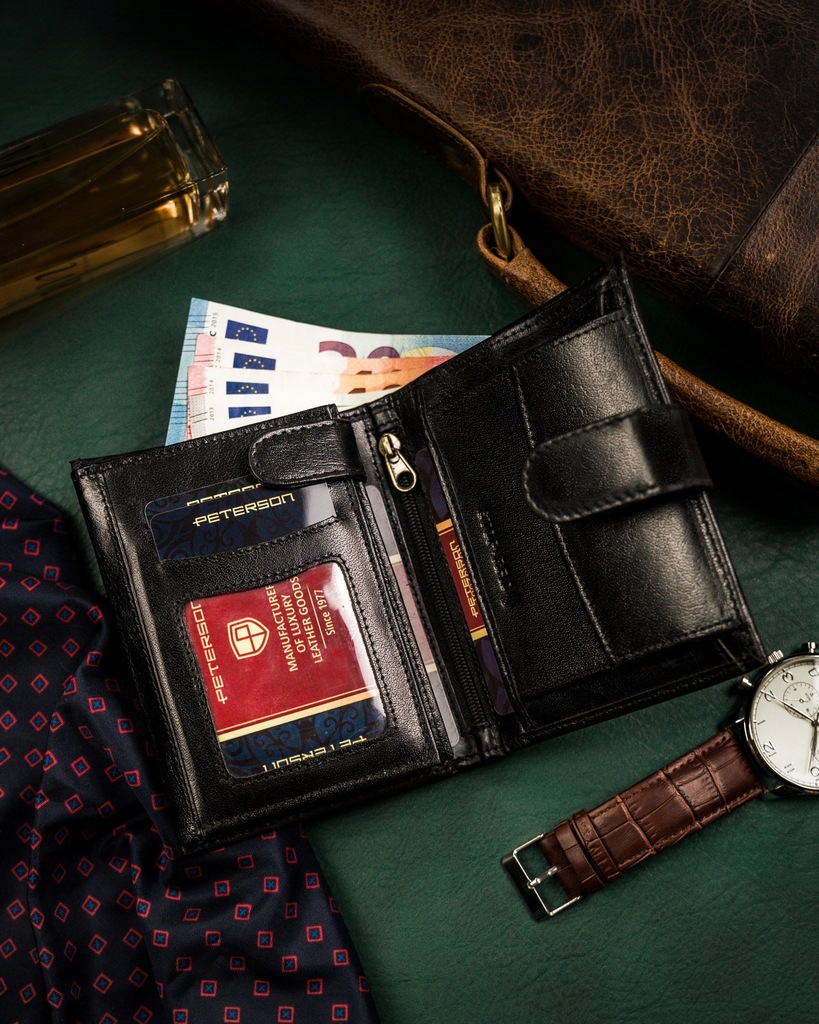Skórzany męski portfel z zapinką PETERSONⓇ
