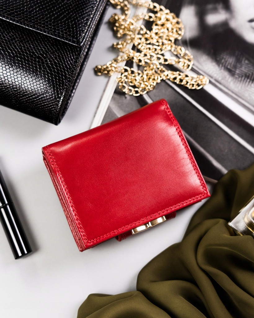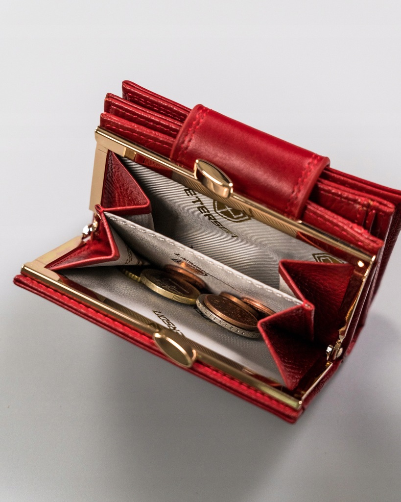 #️⃣ Pionowa klasyka | Portfel o klasycznej stylistyce w najmodniejszym czerwonym kolorze. Model w orientacji pionowej, zapinany bezpiecznym i trwałym zatrzaskiem