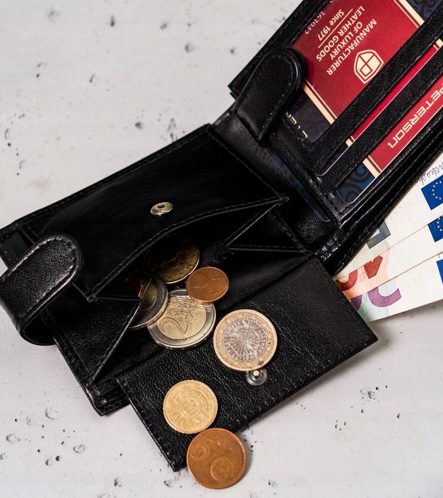 - 2 pełnowymiarowe kieszenie na banknoty;