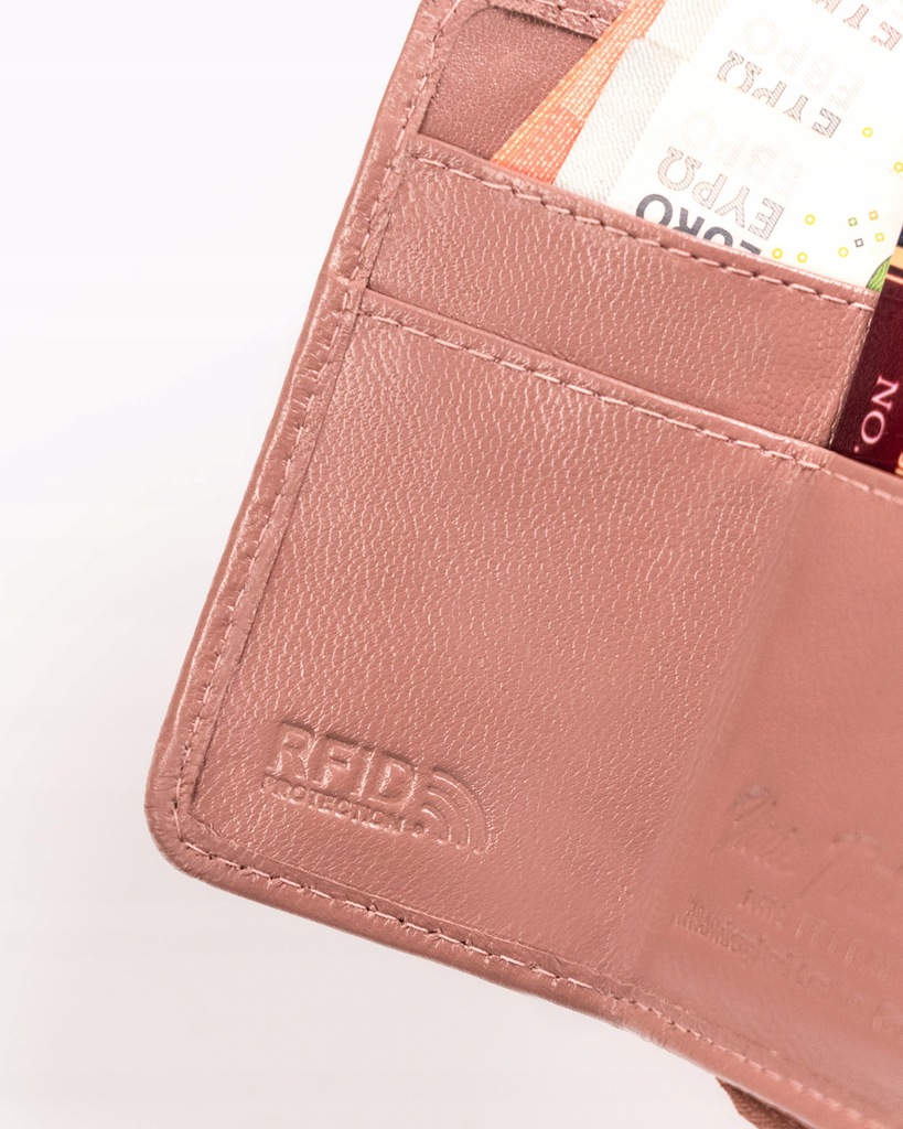 Portfel wyposażony w specjalną podszewkę z RFID BLOCKING SYSTEM (Radio-Frequency IDentification), która zabezpiecza karty zbliżeniowe, dokumenty biometryczne, legitymacje i karty komunikacji miejskiej przed nieautoryzowanym odczytem danych. Technologia uniemożliwia odczyt danych za pomocą specjalnych czytników wykorzystywanych do kradzieży danych.