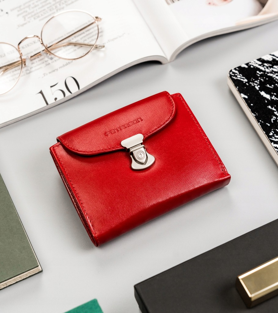 #️⃣ Klasyczny wygląd | Portfel o klasycznej stylistyce w zmysłowym, klasycznym czerwonym kolorze. Model w orientacji pionowej, zapinany klapką na zatrzask