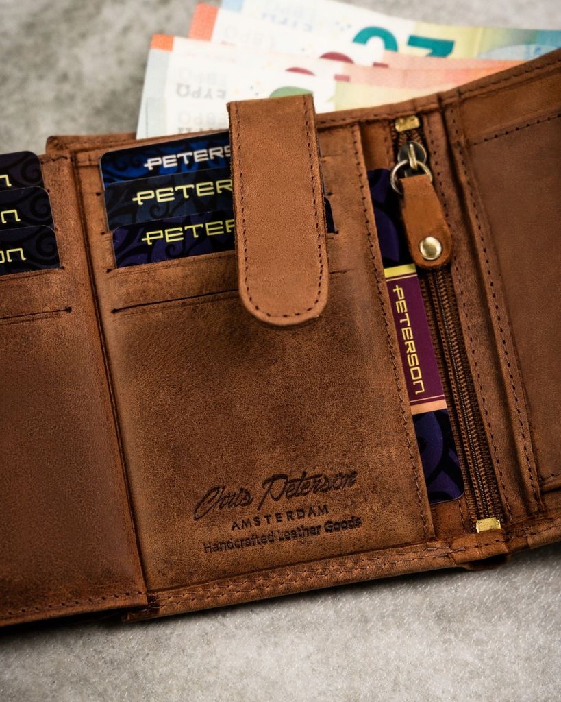 Portfel jest bardzo pojemny również w kwestii Twojej gotówki. Kieszenie na pieniądze, podobnie jak przegródki na karty także wyściełane są odporną na otarcia podszewką.
