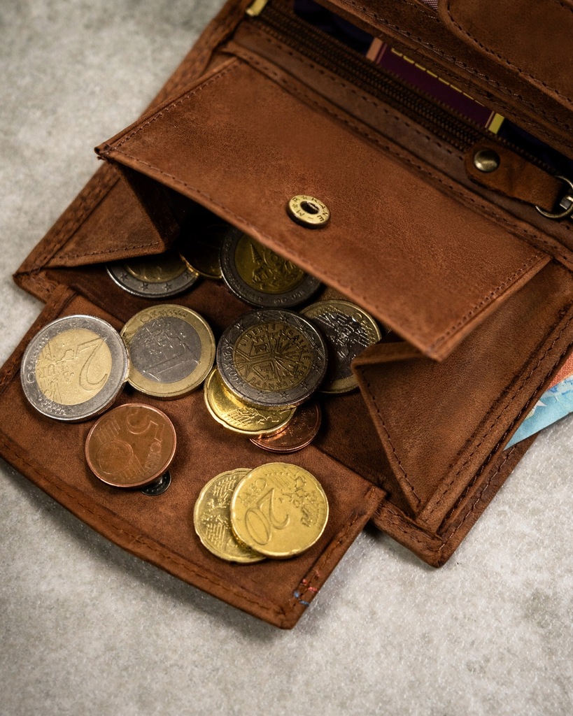 ✅ banknoty schowasz do 2️⃣ otwartych przegródek wyszytych po całej szerokości portfela;