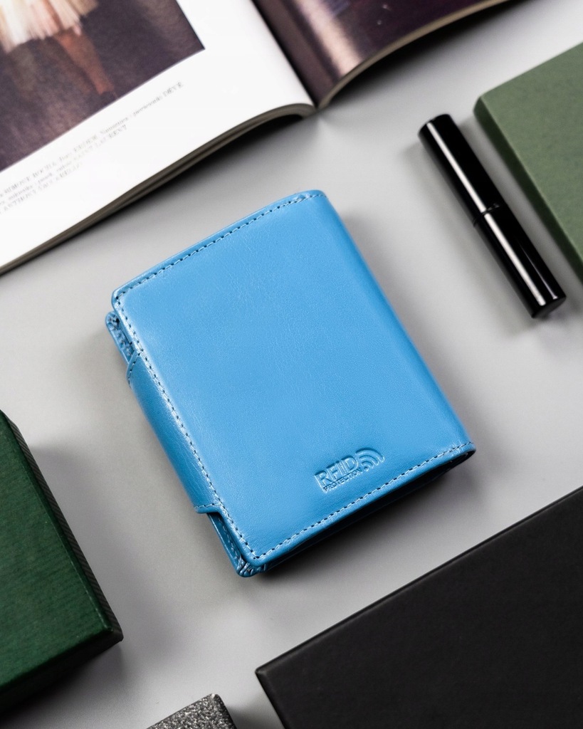 Portfel wyposażony w specjalną podszewkę z RFID BLOCKING SYSTEM (Radio-Frequency IDentification), która zabezpiecza karty zbliżeniowe, dokumenty biometryczne, legitymacje i karty komunikacji miejskiej przed nieautoryzowanym odczytem danych. Technologia uniemożliwia odczyt danych za pomocą specjalnych czytników wykorzystywanych do kradzieży danych.