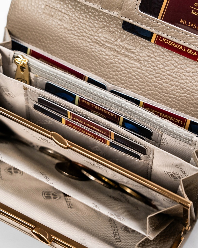 PETERSON portfel damski skórzany duży z zabezpieczeniem RFID STOP
