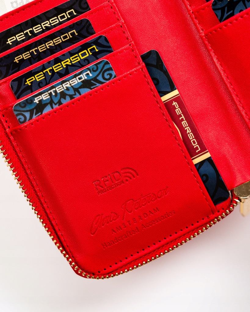 Galanteria marki Peterson® cieszy się ogromną popularnością. Każdy produkt projektowany jest zgodnie z aktualnie obowiązującymi trendami, nawiązując do oryginalnej i ponadczasowej stylistyki. Bogactwo kolorów i wzorów, jak również wysoka jakość wykonania to cechy, które charakteryzują markę.