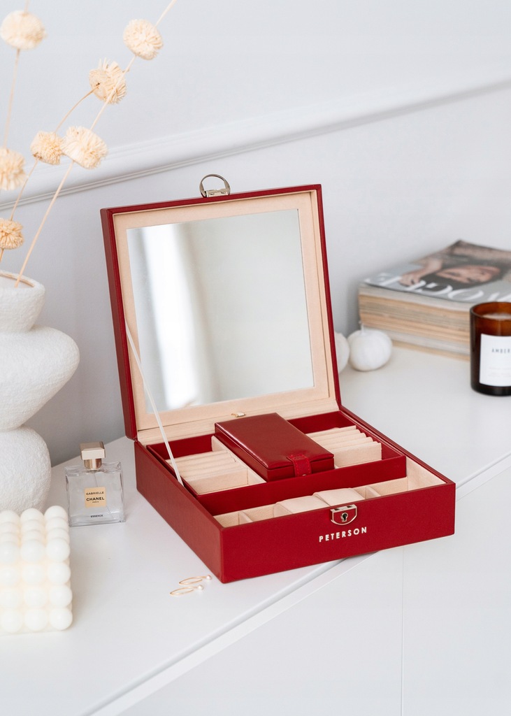 PETERSON duży organizer na biżuterię szkatułka na kluczyk lusterko ekoskóra