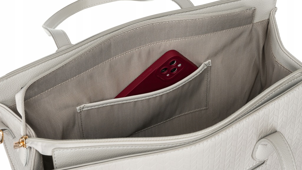 Na wyposażeniu torebki znajdują się dwa uchwyty i odpinany pasek, którego długość możesz w szybki sposób zmienić w zakresie 72-128 cm.