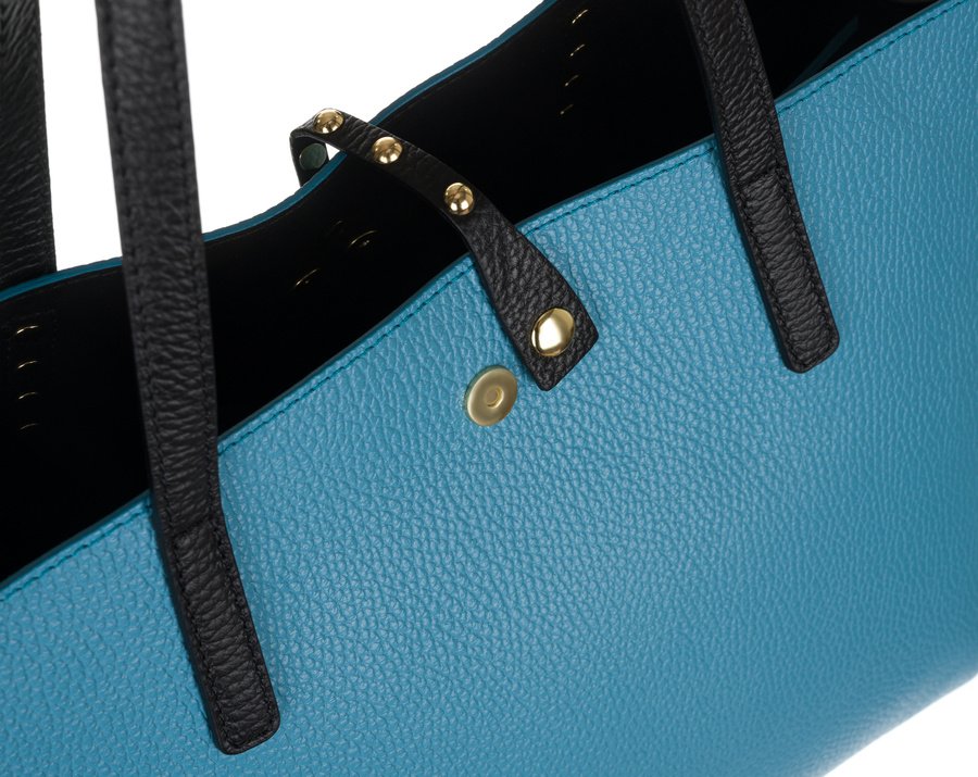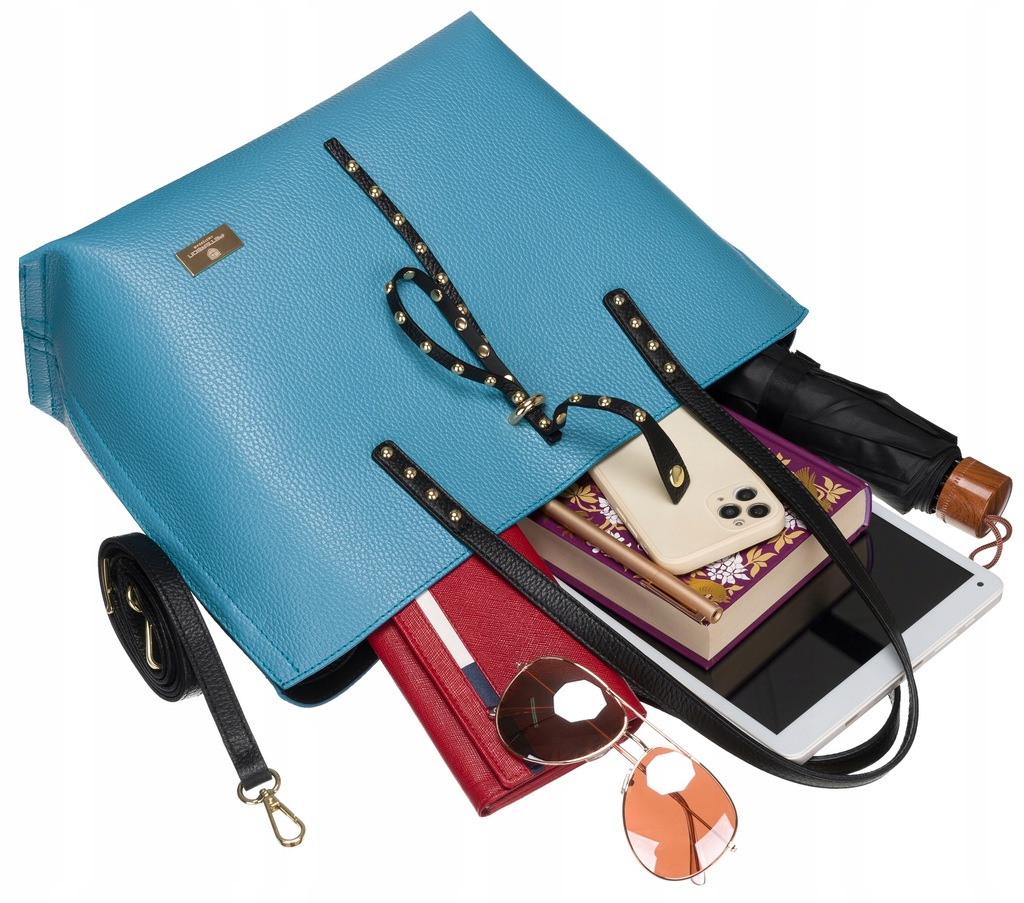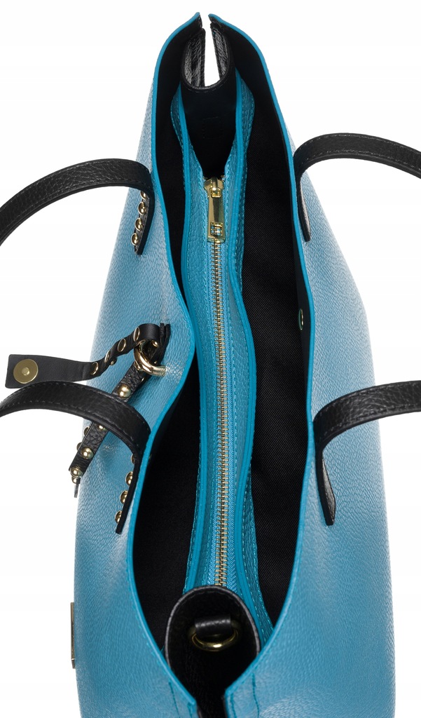 Duża torebka damska o ponadczasowej, klasycznej stylistyce. Wykonana z WŁOSKIEJ skóry naturalnej o ziarnistej fakturze. Torba ozdobiona złotymi dżetami, a do tego niesamowicie funkcjonalna dzięki swojej pojemności — dedykowana dla najbardziej wymagających Kobiet, które stawiają na wygodę i lubią być przygotowane na każdą ewentualność.