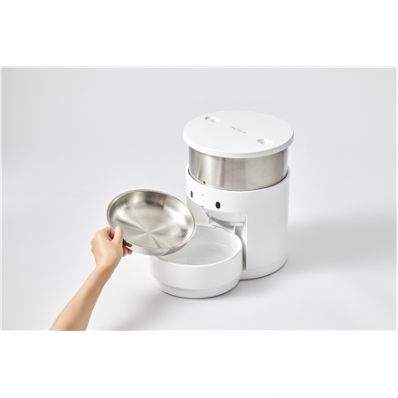 - Technical details / Inne funkcje: Bowl capacity 0.74 L. The 3 built-in lock systems keep food fresh. Sealing silicon on the lid and at the door and the desiccant box keep the food dry. Built-in weight sensor measures accurately. Auto rotating bowl prevents over loaded food and food stacking. It also avoids food spill. Every grain falls evenly and decently.