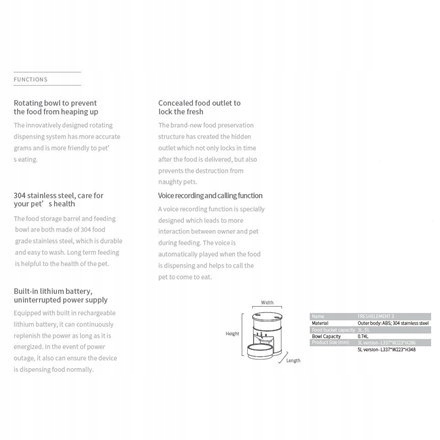 PETKIT Smart pet feeder Fresh element 3 Capacity 3 L, Material Stainless steel and ABS, White