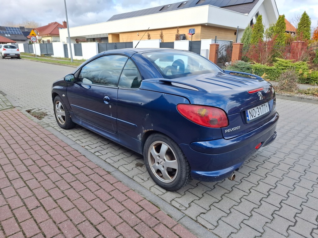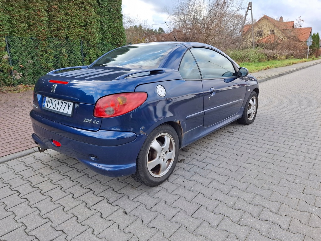PEUGEOT 206 CC 1.6 110 KM - samochód sprowadzony z Niemiec w sierpniu 2022 , w pełni udokumentowane kilometry , przegląd ważny do 08.2025 , na prawie nowych oponach zimowych , ostatnio zmienione wahacze przód P+L , łożyska amotyzatorów 4000 km , olej + filtry + świece 3500 km , kompletny rozrząd z pompą wody + pasek PK z napinaczem 2000 km , do wymiany łożyska belki tył i reperaturki błotników tył .