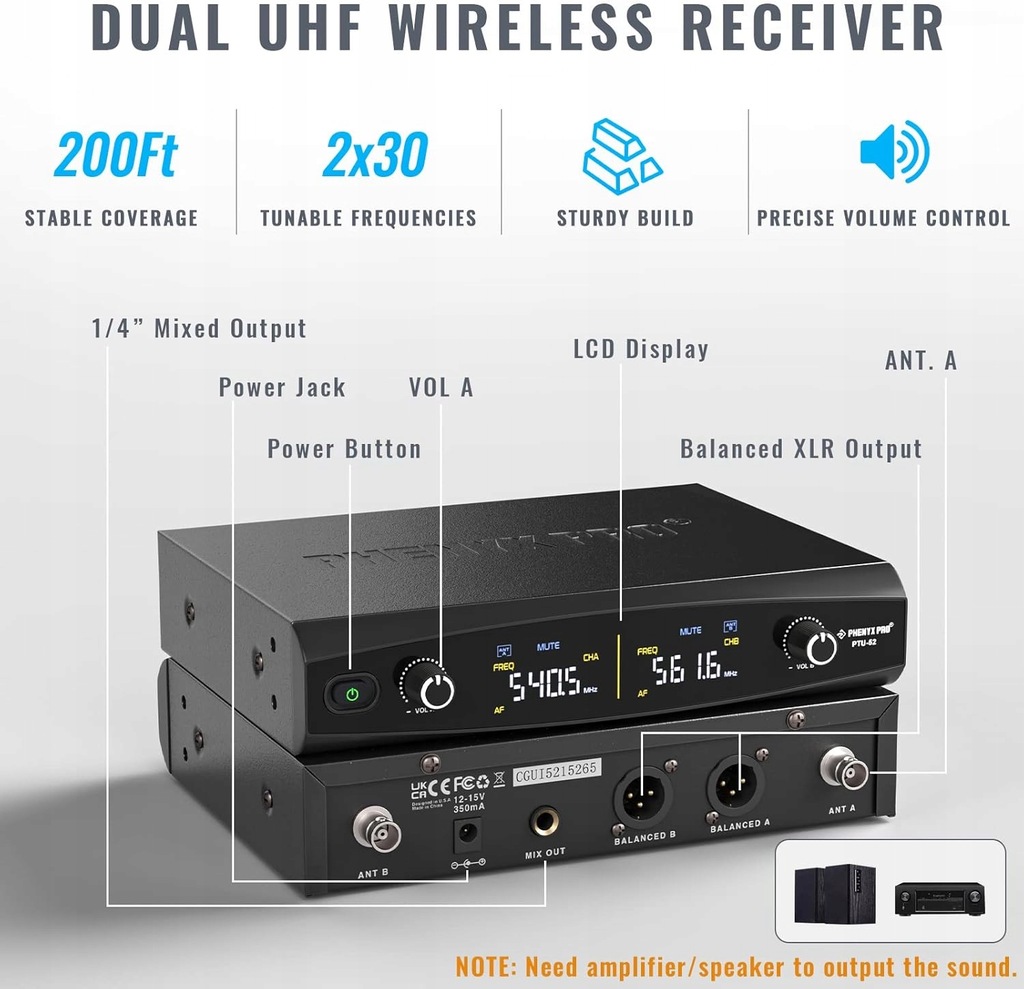 Phenyx Pro PTU-52 to profesjonalny system mikrofonowy bezprzewodowy, który zapewnia wysoką jakość dźwięku i niezawodność w różnych warunkach. Zestaw składa się z dwóch mikrofonów bezprzewodowych, które pracują w paśmie UHF, zapewniając regulowane częstotliwości oraz stabilny sygnał na odległość do 200 stóp (około 60 metrów). Doskonały do wykorzystania w karaoke, kościołach, prezentacjach, a także na różnorodnych wydarzeniach.