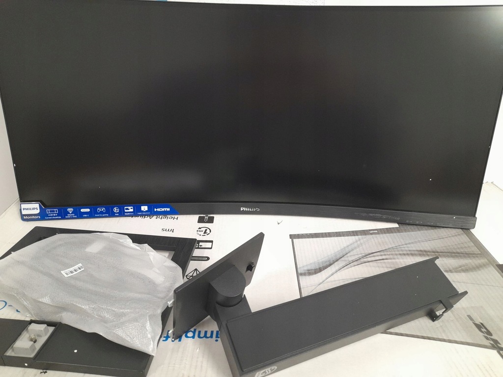 Wysokiej jakości technologia paneli VA, czas reakcji 1 ms (MPRT), zakrzywienie 1500 mm, matowy wyświetlacz, regulacja wysokości 100 mm, głośniki 2x 5 W, wyjście słuchawkowe, VESA 100x100, zdejmowana podstawka, format obrazu 21:10, wąska ramka z trzech stron strony