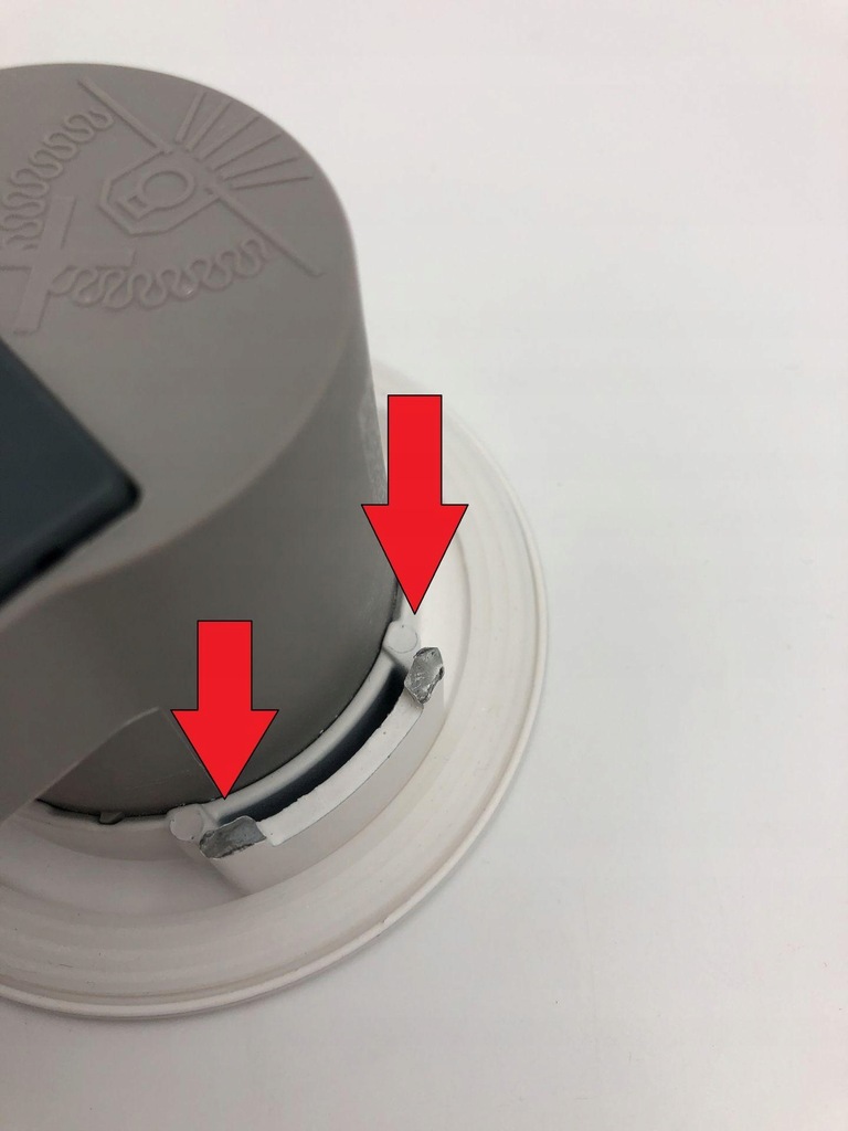 Wada w postaci oderwanych mocowań sprężynek montazowych oznaczone na zdjęciu.Przedmiot posiada certyfikat CE.Instrukcja w jezyku Angielskim.