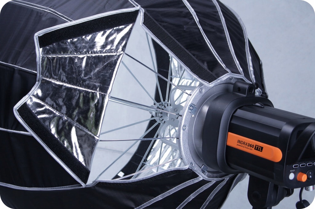 Jeden z najpopularniejszych modeli w topowej serii softboxów Phottix Raja. Oktagonalna konstrukcja modyfikatora wykonana jest z trwałego i odpornego na wysoką temperaturę materiału Techtec. To co wyróżnia Raję na tle konkurencji to opatentowany przez markę Phottix system szybkiego montażu. Softbox otwiera się jak parasol dzięki scentralizowanemu metalowemu złączeniu umożliwiającemu przygotowanie softboxu do pracy w kilka sekund.