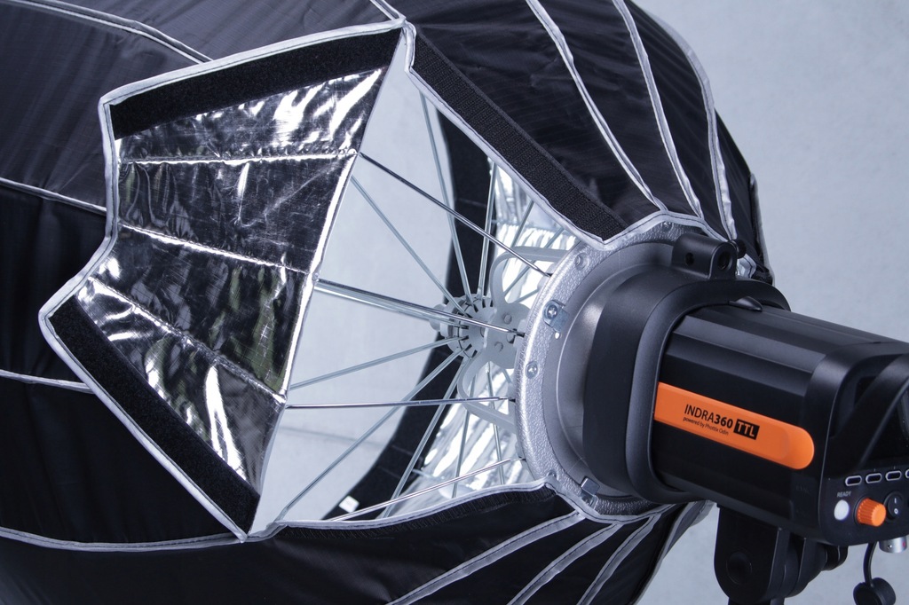 Raja 80 to jeden z najpopularniejszych modeli w topowej serii softboxów Phottix Raja. Oktagonalna konstrukcja modyfikatora wykonana jest z trwałego i odpornego na wysoką temperaturę materiału Techtec. To co wyróżnia Raję na tle konkurencji to opatentowany przez markę Phottix system szybkiego montażu. Softbox otwiera się jak parasol dzięki scentralizowanemu metalowemu złączeniu umożliwiającemu przygotowanie softboxu do pracy w kilka sekund.