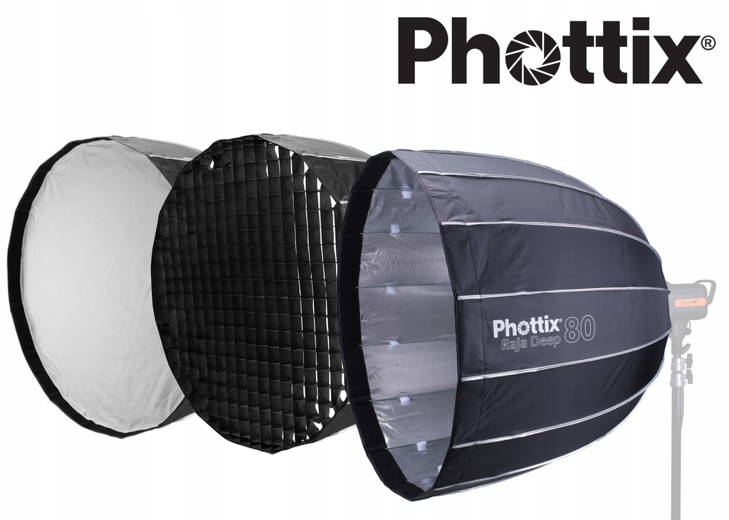+ PHOTTIX RAJA DEEP 80 SOFTBOX + GRID + DYFUZOR + POKROWIEC - MOCOWANIE BOWENS