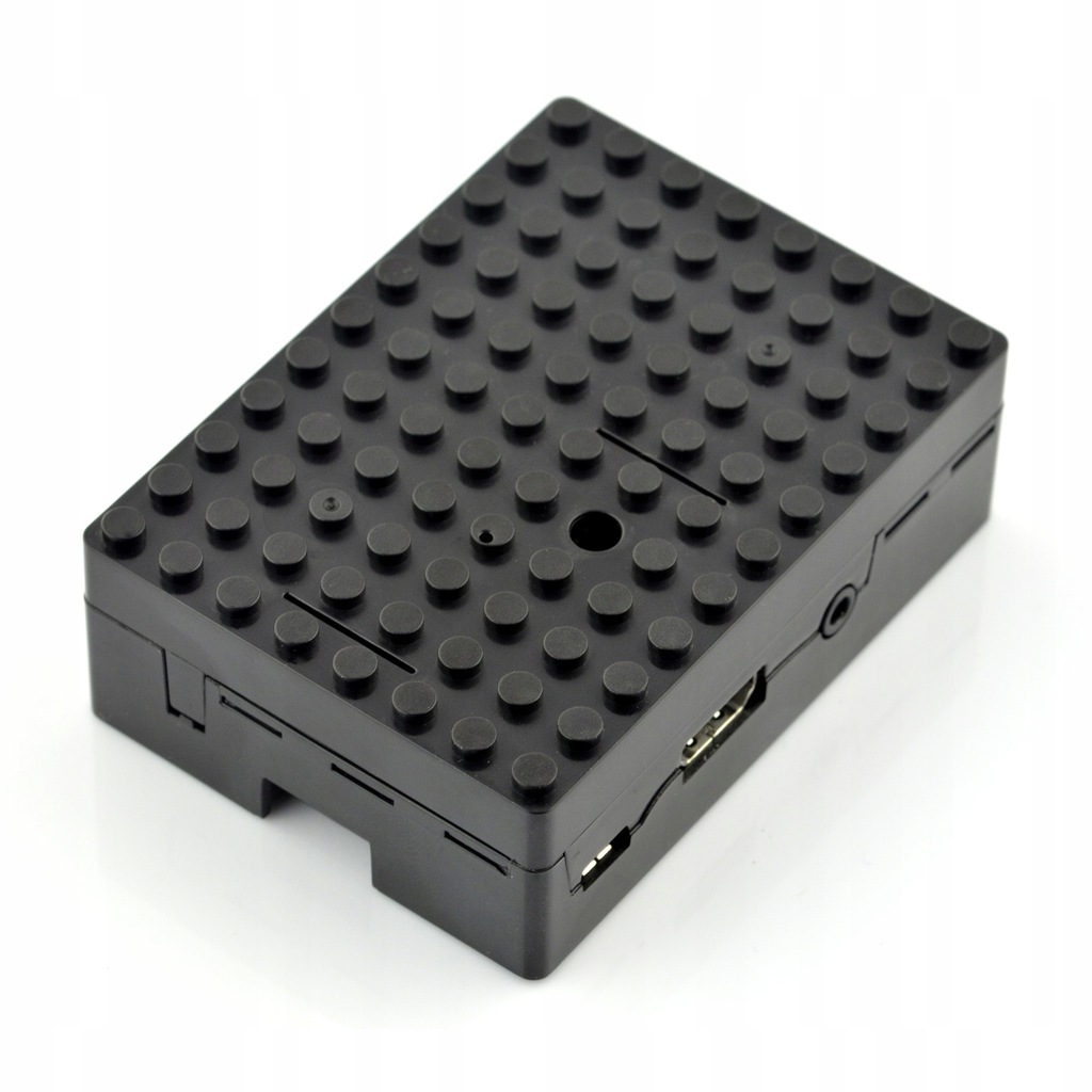 Prosta, plastikowa obudowa w kolorze czarnym do minikomputera Raspberry Pi w wersji 3B +, 3B, 2B i 1B+ o wymiarach zewnętrznych 90 x 65 x 31 mm. Dzięki zastosowanym wypustkom możliwe jest łączenie blokowe kilku obudów razem.