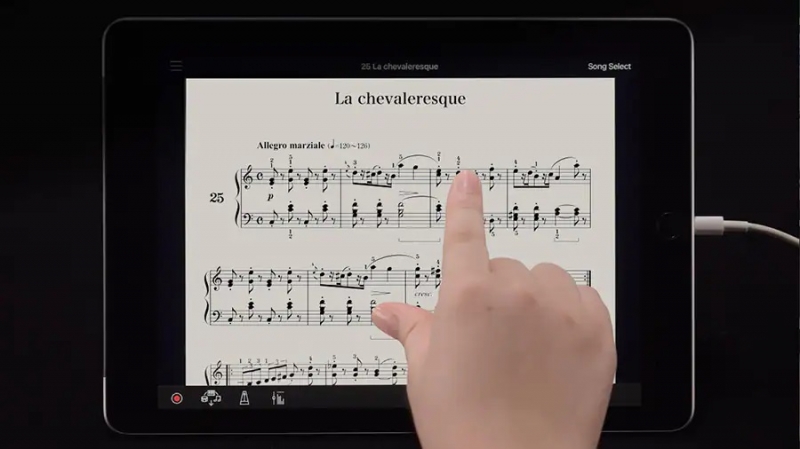 - Kompatybilny z aplikacją Smart Pianist - posiadającą intuicyjną obsługę i możliwość podglądu partytur
