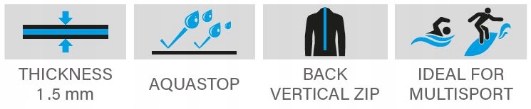 - Neopren o grubości 1,5 mm jest optymalną grubością jeśli chodzi o zapewnienie odpowiedniej termiki aktywnej osobie nie ryzykując przegrzania i jednocześnie nie ograniczając ruchów w żaden sposób.