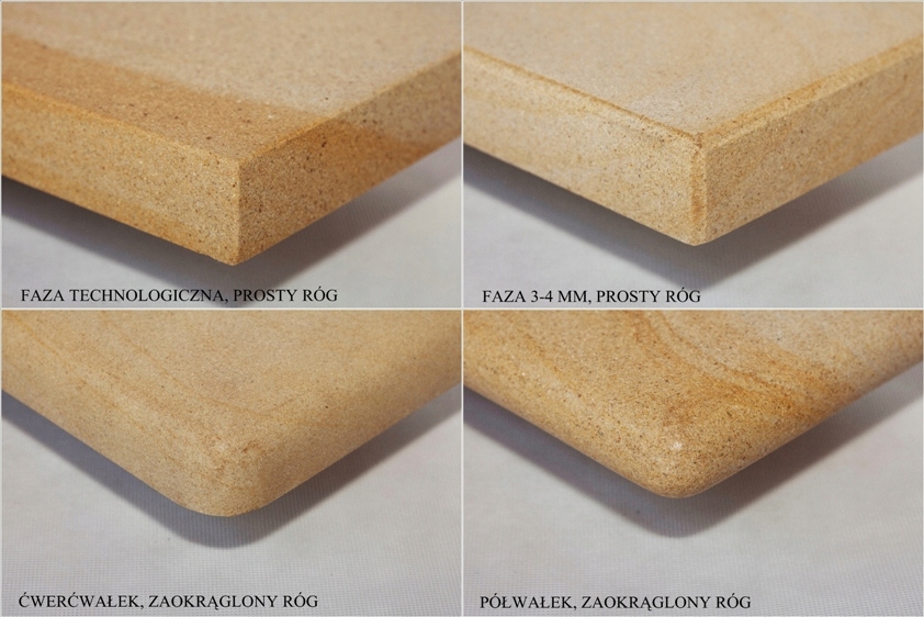 - obróbki na powierzchni, tj. czy parapety mają być: szlif ( płyty matowe ), czy poler ( płyty błyszczące, z połyskiem ), czy może płomień ( płyty czerwone, chropowate, antypoślizgowe );