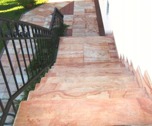 Wykonujemy i oferujemy Państwu schody z piaskowca "Długopole", ponieważ wyróżnia go wyjątkowa jak na piaskowce twardość, wysoka odporność na ścieranie, niska nasiąkliwość, duża odporność na ściskanie oraz całkowita mrozoodporność. Cechy te powodują, iż nasze schody w niczym nie ustępują tym, które są wykonane z granitu.