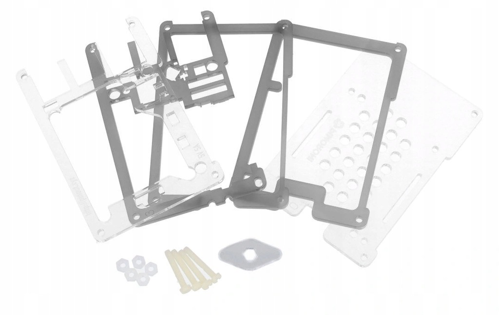 Obudowa Pibow w kolorze Ninjawyprodukowana przez PiMoroni przeznaczona do minikomputera Raspberry Pi 5. Składa się zczterech unikalnych warstw w kolorze szarym oraz górnej - przezroczystej, która umożliwia zainstalowanie aktywnego chłodzenia Raspberry Pi.