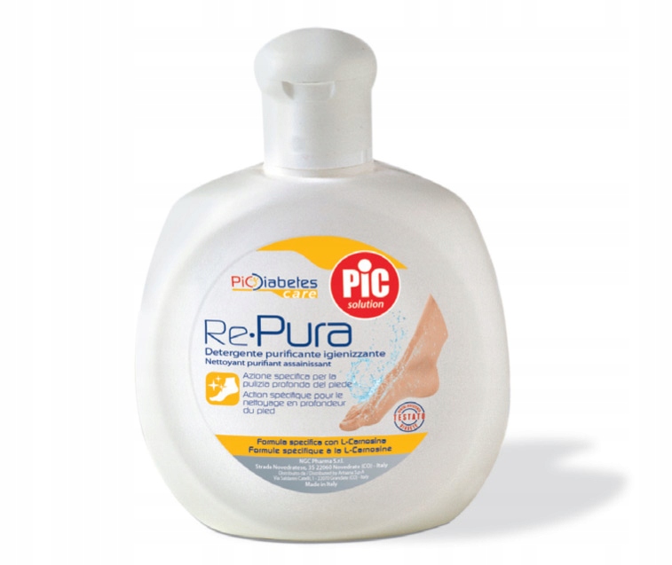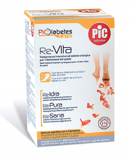 Zestaw trzech kosmetyków z L-karnozyną dla higieny i pielęgnacji stóp, zaprojektowany dla diabetyków.