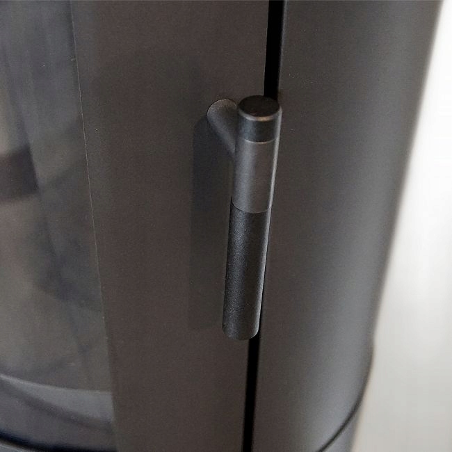 Solidna pionowa klamka, ułatwia szczelne zamknięcie drzwiczek. Dzięki temu urządzenie doskonale sprawdzi się w domach z rekuperacją.