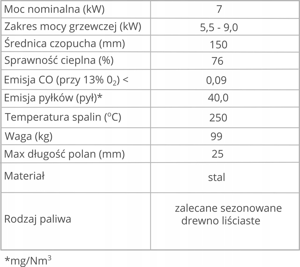 - Rodzaj paliwa: sezonowane drewno liściaste (wilgotność ≤20%)