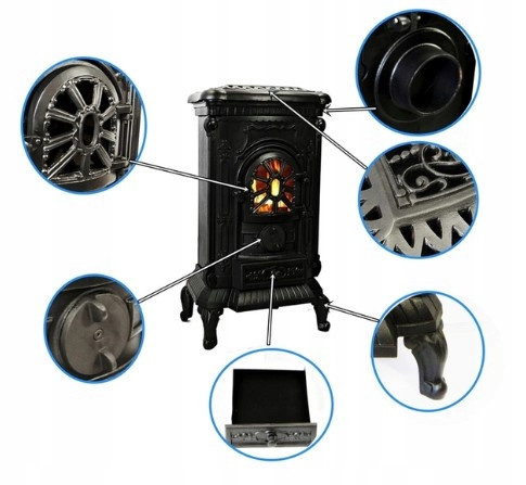 ➡️ Piec wykonany posiada grube żeliwne ścianki wykonane z najwyżej jakości odlewu, które długo magazynują ciepło i oddają je jeszcze długo po wygaśnięciu w palenisku,