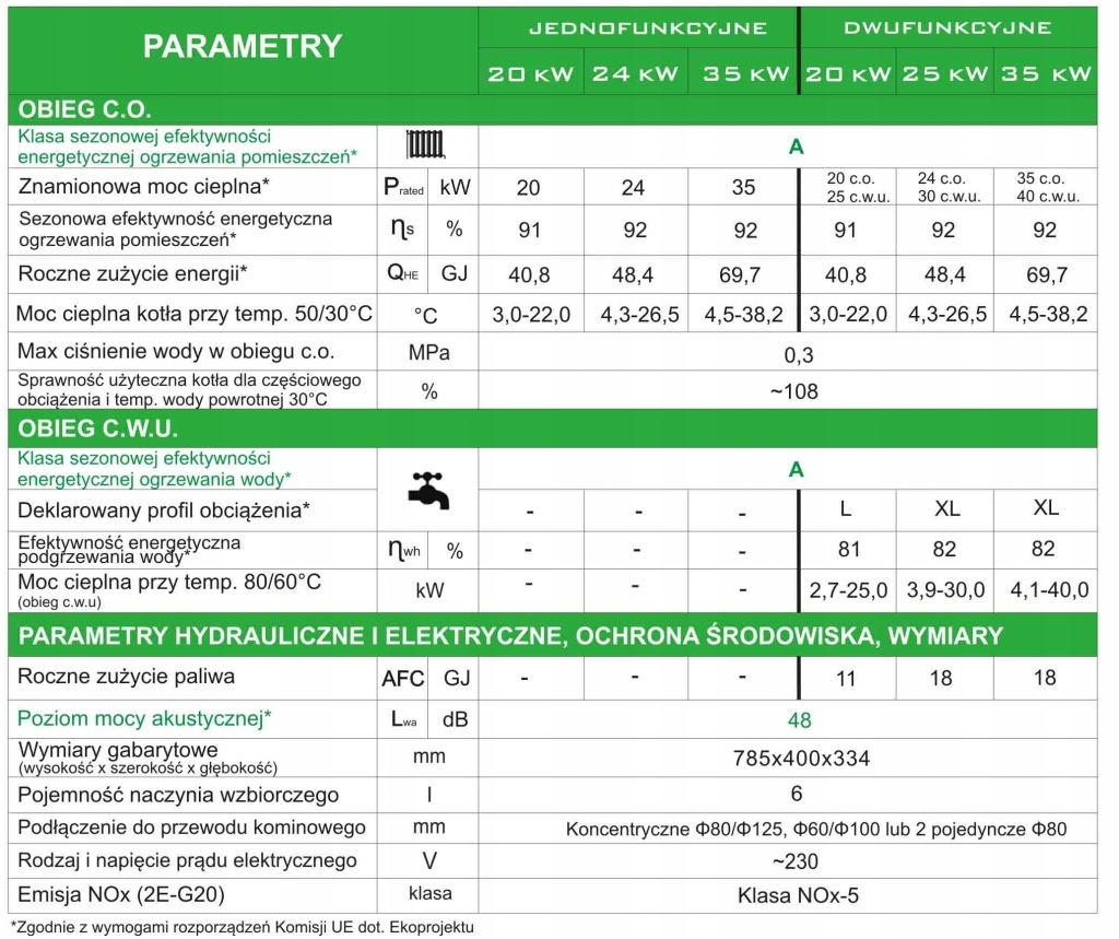 - Nominalne obciążenie: 4,0 - 30,7 kW