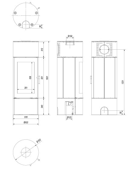 Piec wolnostojący ANTARES 10 + dolot z wylotem spalin fi 150, moc 6-12kw