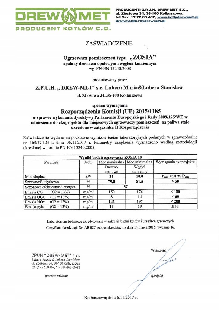 Ogrzewacz pomieszczeń ZOSIA jest nowoczesnym, wysoko efektywnym i estetycznym urządzeniem przeznaczonym do ogrzewania domów jednorodzinnych, garaży oraz pomieszczeń gospodarczych. Kocioł może również pracować poza sezonem grzewczym w układzie z bojlerem na ciepłą wodę użytkową oraz jako kuchnia (żeliwna płyta kuchenna). Wymiennik ogrzewacza pomieszczeń wykonany jest z wysokiej jakości, atestowanej blachy kotłowej P265GH o grubości 5 mm.