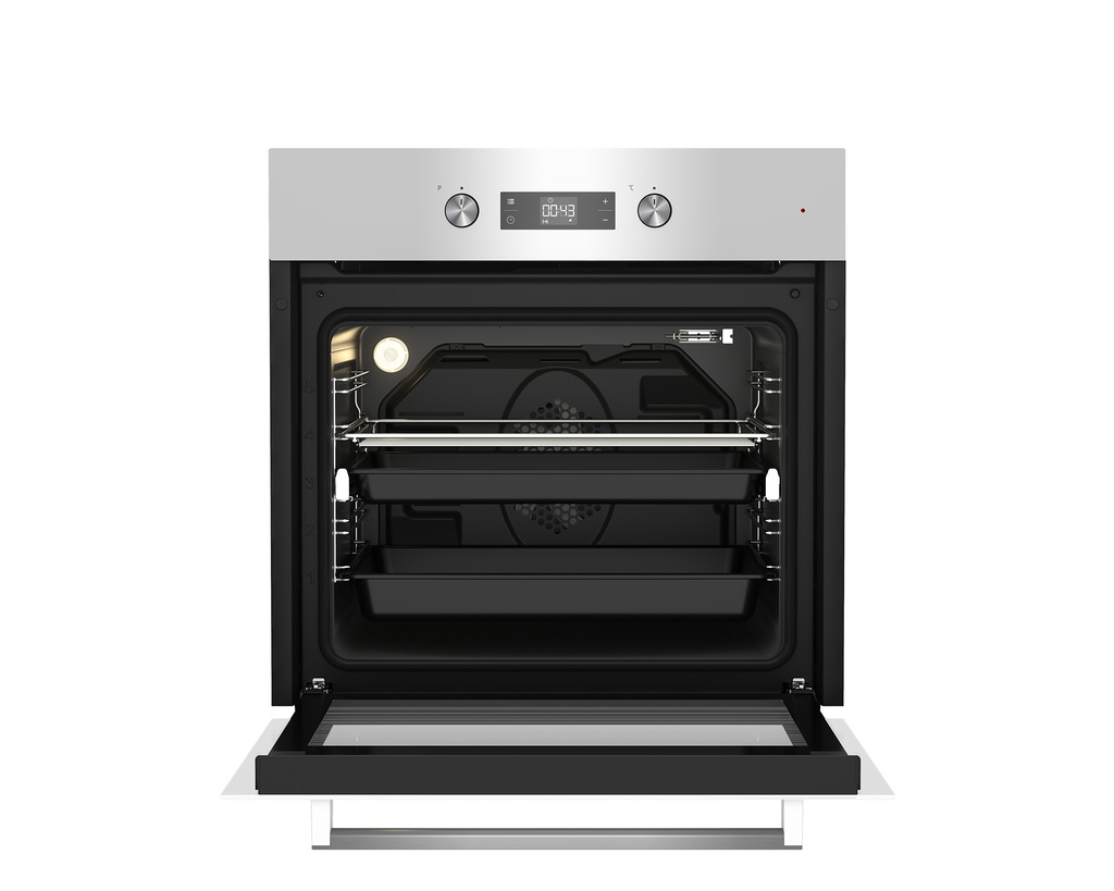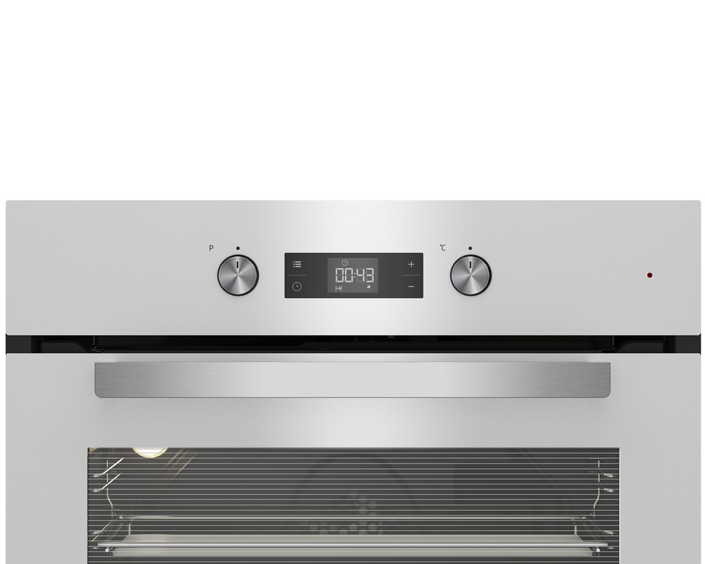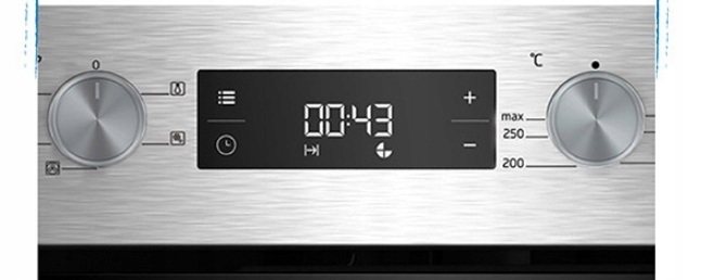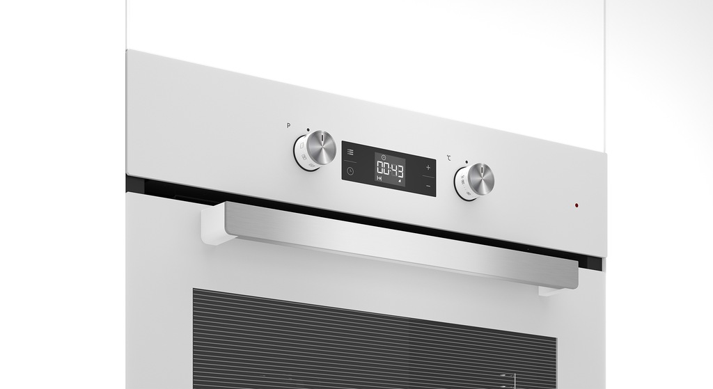 Estetyczny i łatwy w obsłudze wyświetlacz w tym piekarniku Beko ułatwi wybieranie odpowiednich funkcji i programów. Sterowanie piekarnikiem odbywa się za pomocą ergonomicznych, chowanych pokręteł.