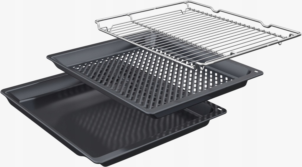 W zestawie znajdują się ruszt kombinowany, blacha uniwersalna oraz blacha Air Fry.